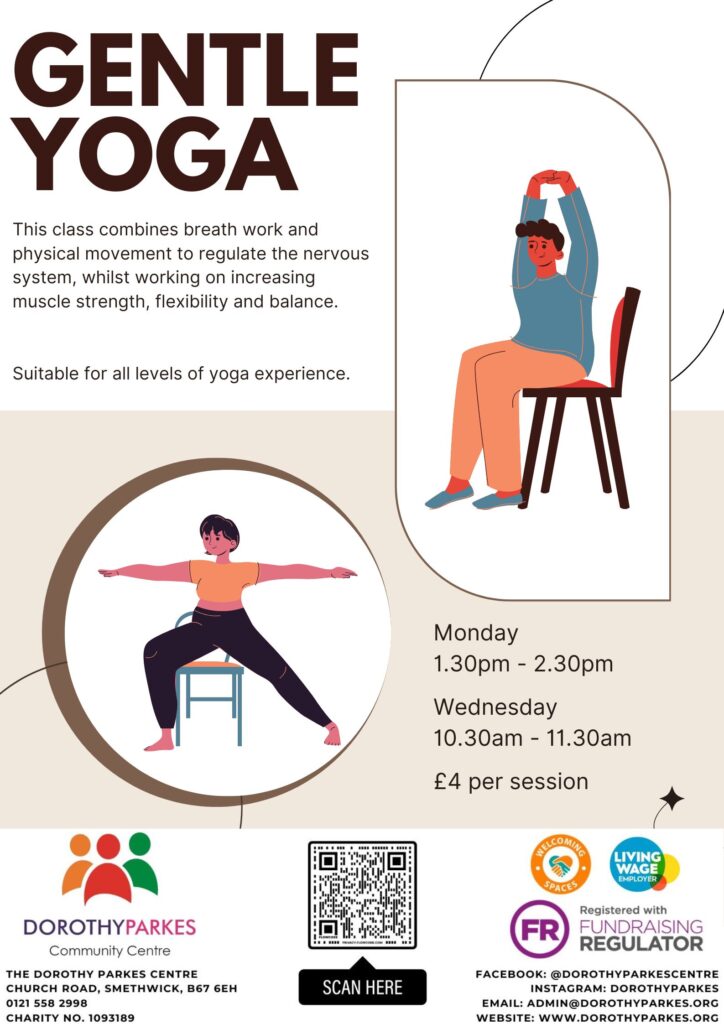 Description of Activity: This gentle yoga class is perfect for those coming to yoga for the first time. The session will encourage movement, strengthening of the body, and quietening of the mind. It includes seated and standing postures on the mat, breathing techniques and meditation. There is some getting up and down from the floor